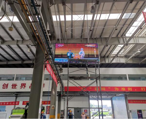 蕪湖中聯(lián)重科生產(chǎn)車間20個(gè)平方室內(nèi)Q3全彩LED顯示屏